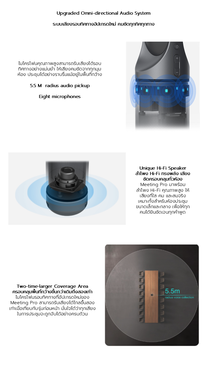 8 microphones, which can cover range to 5.5 meters radius. 5W Hi Fi Speaker